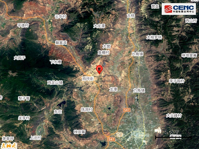 隔邻村镇:本次地震相近5公里内的村落有鸡坪街、长坪子、前边山、鸡坪关、西瓜地、沙湾、大塘子、吴家箐、团山、干塘子,20公里内的州里有鸡足山镇、力角镇、大营镇、金牛镇、太和乡。